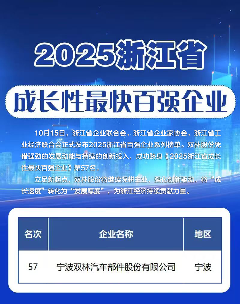 双林荣登2025浙江省成长性最快百强企业榜