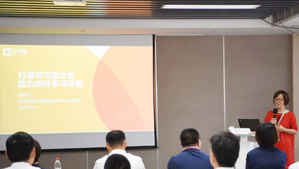 双林教育战略执行总监兼人力资源中心总监印雁首先介绍了此次双林网络学习平台项目的整体情况,指出此次网络学习平台的上线,逐步形成知识型培训的网络化,让每一位员工都成为知识的贡献者,也成为知识共享时代下的受益者。同时强调企业大学、人力资源部门、业务部门三方协作,为学习型组织的建立互相探讨。
